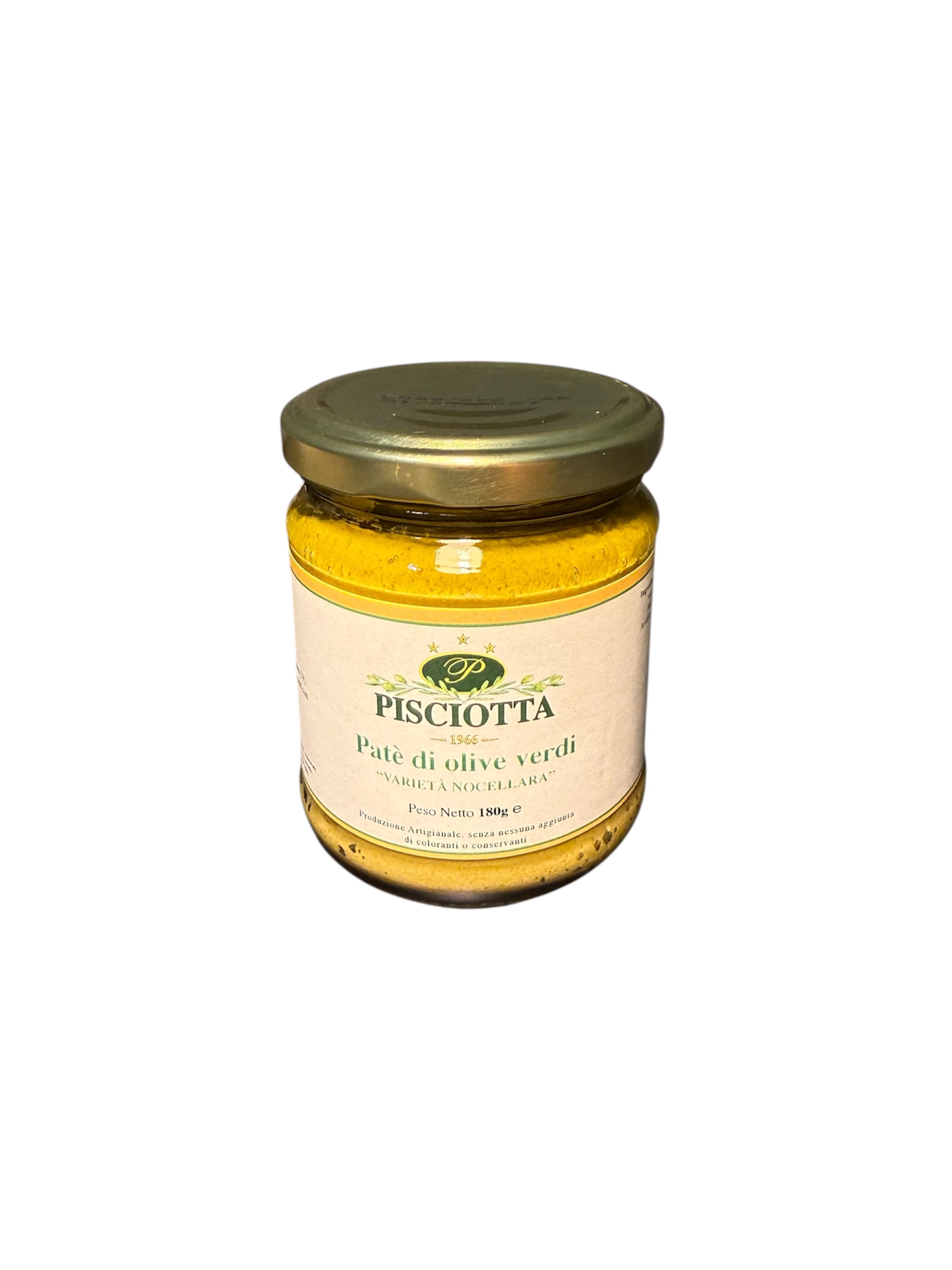 | Ingredienti | Paté di olive verdi, olio extravergine d'oliva “PISCIOTTA”, peperoncino, aglio. |